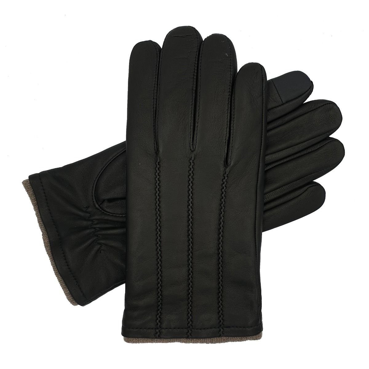 Men’s lined leather glove featuring three straight chisel points and a cashmere rich knitted lining.